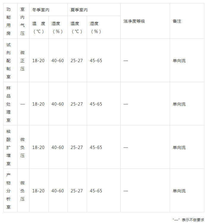 關(guān)于PCR實(shí)驗(yàn)室的功能用房環(huán)境設(shè)計(jì)參數(shù),在《疾病預(yù)防控制中心建筑技術(shù)規(guī)范》GB50881-2013中這樣要求: